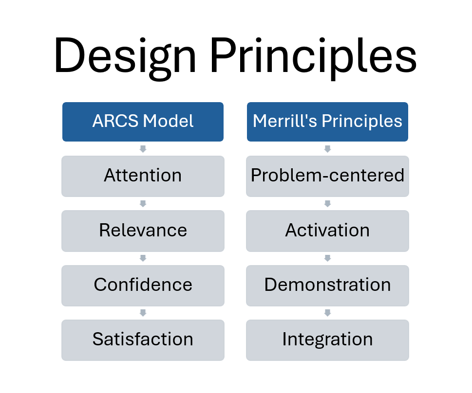 To ensure successful training, it was important to engage and motivate the learners to assume the new responsibility, so we relied on principles from Merrill’s Instruction Design Principles, and ARCS Model of Motivation.