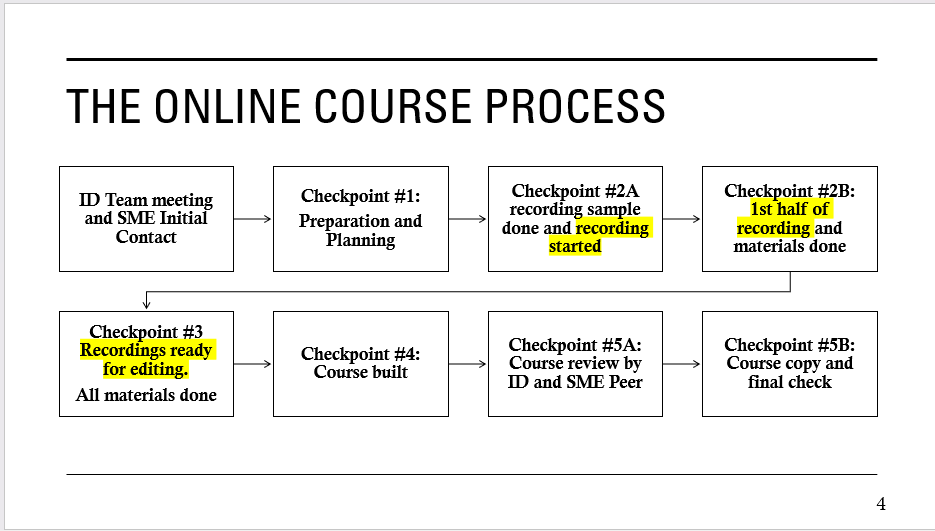 Online course development takes seven months, but I must complete analysis and design by the first month so instructor can complete all their lecture recordings by the third month for checkpoint 3. To ensure that instructors understand and approve the course setup, I utilize SAM.